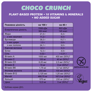 Ми поєднали базу з баз: шоколад, карамель та горіхи. Додали хрустики для фану і аж 10 вітамінів та мінералів для твого well-being 💆♀️