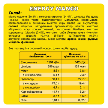 Батон “Mango Energy” в колабі з DTEK – чіткод для твоєї енергії. У складі є адаптогени для щоденного енерджі бусту! А ще кокос, манго і шоколадна глазур. Куштуй, заправляй свою енергетичну батарейку та повторюй цю вправу щодня😉